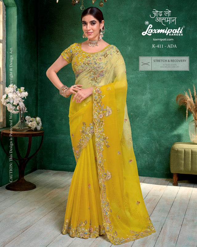 Laxmipati Mangla Gauri K-411 - Yellow Organza Drape By Sanskar Sarees