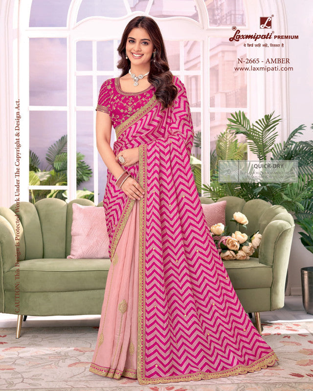 Laxmipati Megha N-2665 - Peach,Rani Crush Silk Drape By Sanskar Sarees