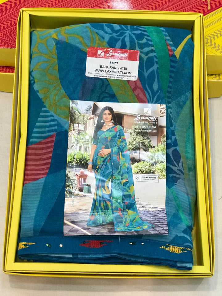 Laxmipati Noori-2 8577 - Blue Multi Georgette Drape By Sanskar Sarees