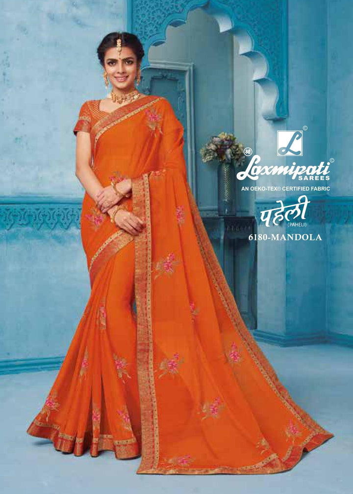 Laxmipati Paheli 6180 Orange Chiffon Saree