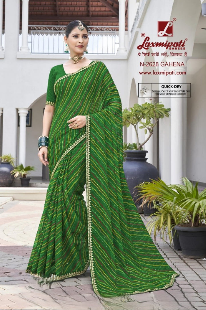 Laxmipati Phulvaari N-2628 Green Chiffon Saree