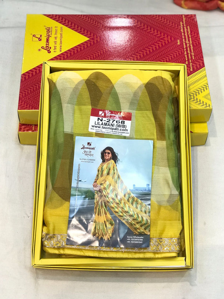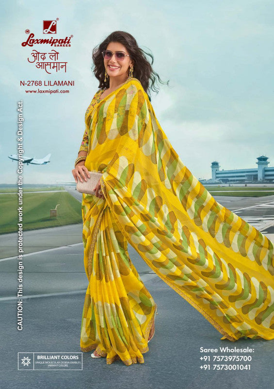 Laxmipati Radhika N-2768 - Yellow Sparkle Chiffon Drape By Sanskar Sarees