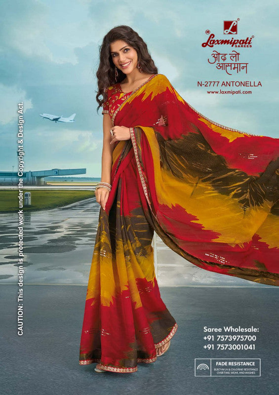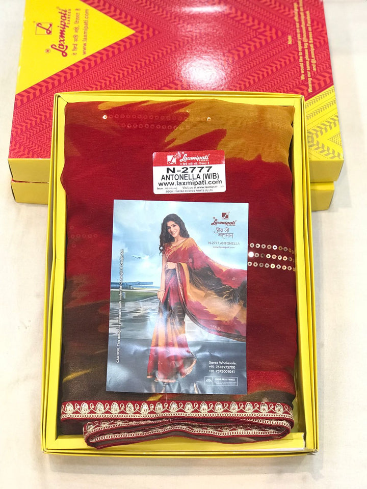 Laxmipati Radhika N-2777 - Red Multi Sparkle Chiffon Drape By Sanskar Sarees