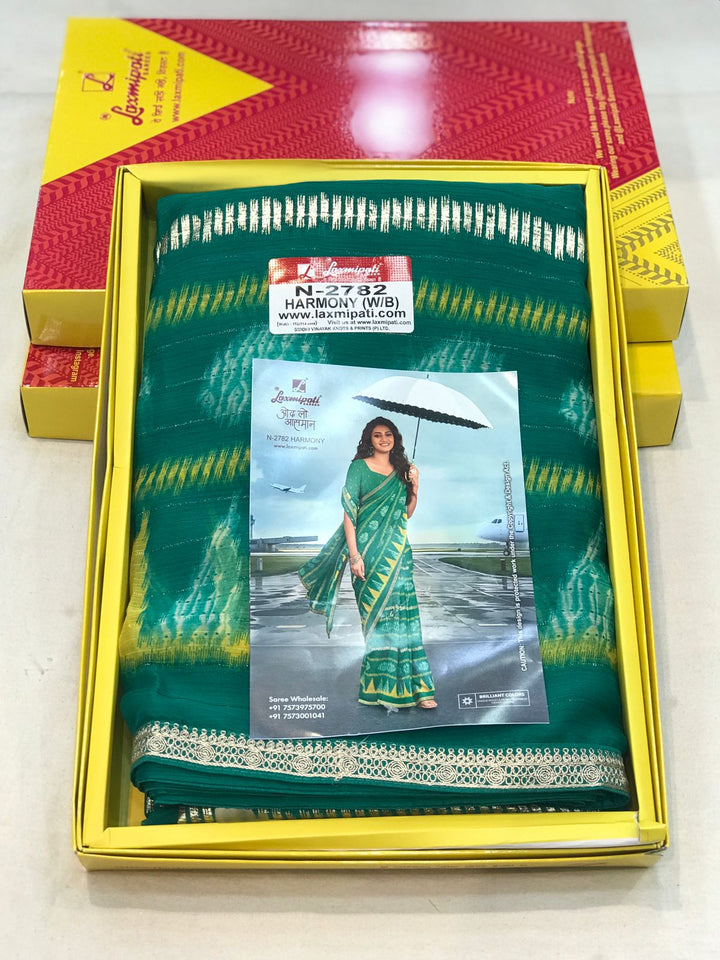 Laxmipati Radhika N-2782 - Peacock Green Chiffon Drape By Sanskar Sarees