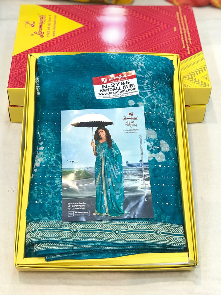 Laxmipati Radhika N-2785 - Sky Blue Sparkle Chiffon Drape By Sanskar Sarees