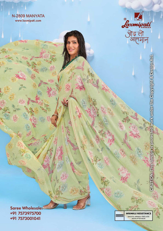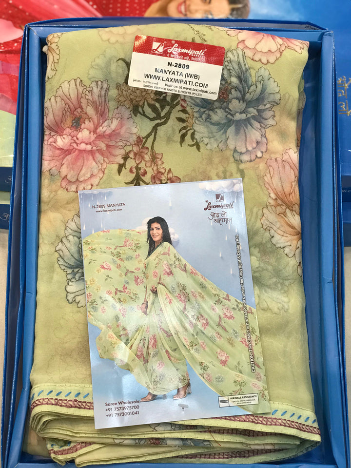 Laxmipati Sadhana N-2809 - Light Pista Georgette Drape By Sanskar Sarees