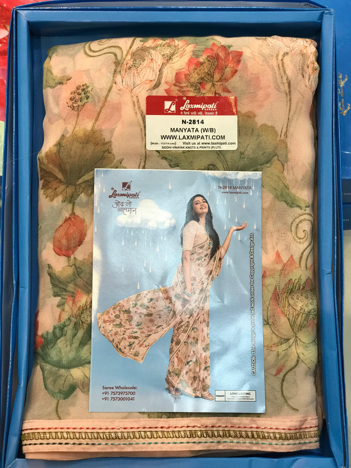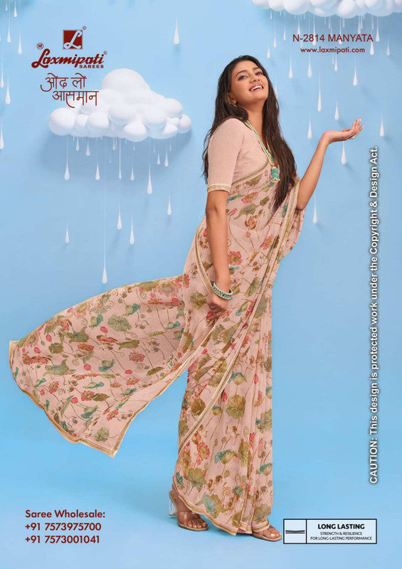 Laxmipati Sadhana N-2814 - Light Peach Georgette Drape By Sanskar Sarees