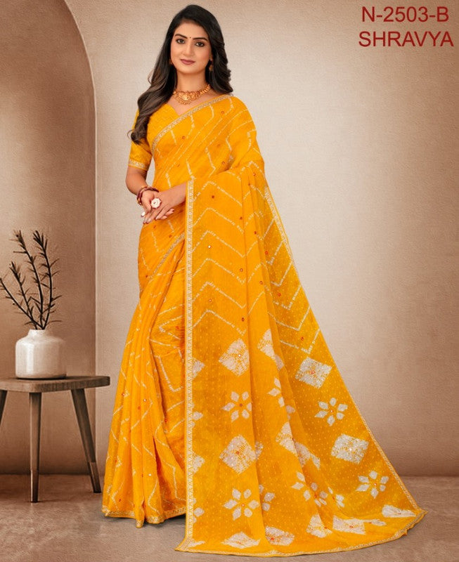 Laxmipati Shravya N-2503-B - Yellow Dotted Chiffon Organza Drape By Sanskar Sarees