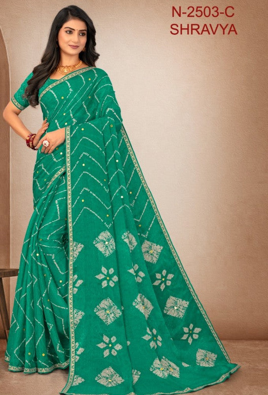 Laxmipati Shravya N-2503-C - Peacock Green Dotted Chiffon Organza Drape By Sanskar Sarees