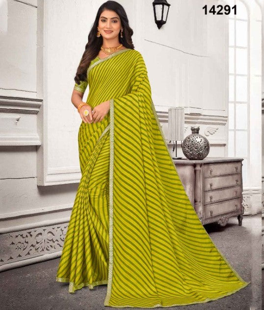 Laxmipati Sundarta-9 14291 - Green Silk Chiffon Drape By Sanskar Sarees