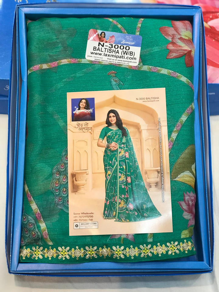 Laxmipati Tohfa N-3000 - Green Sparkle Chiffon Drape By Sanskar Sarees
