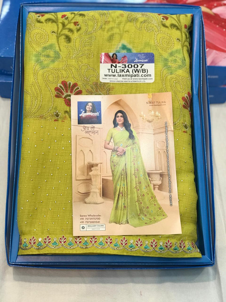 Laxmipati Tohfa N-3007 - Parrot Yellow Chiffon Drape By Sanskar Sarees