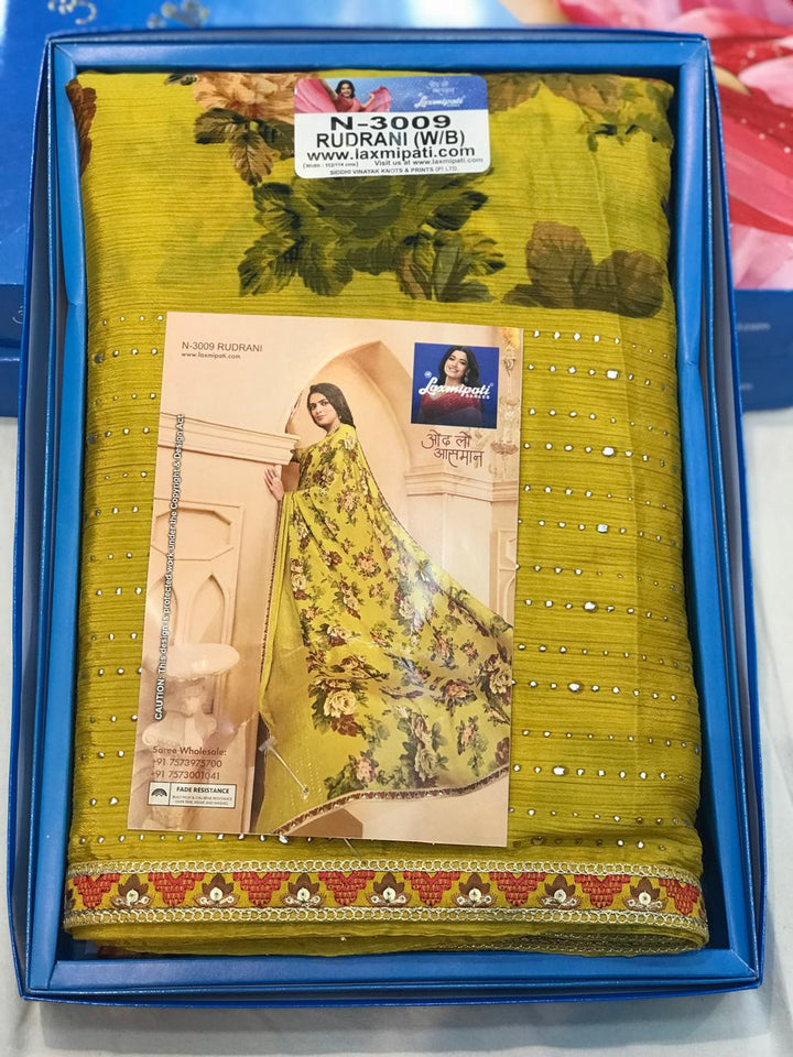 Laxmipati Tohfa N-3009 - Mustered Yellow Moss Chiffon Drape By Sanskar Sarees