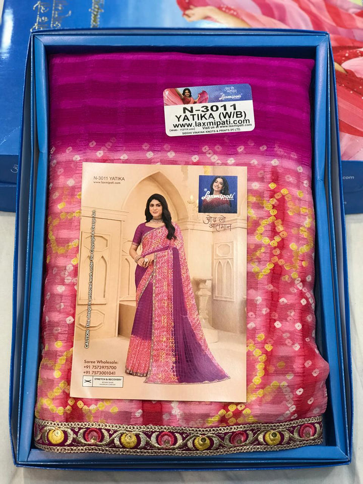 Laxmipati Tohfa N-3011 - Pink/Purple Chex Chiffon Drape By Sanskar Sarees