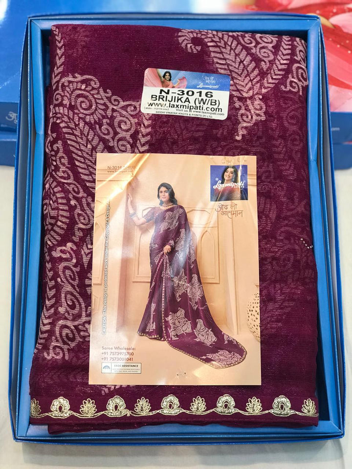 Laxmipati Tohfa N-3016 - Purple Sparkle Chiffon Drape By Sanskar Sarees