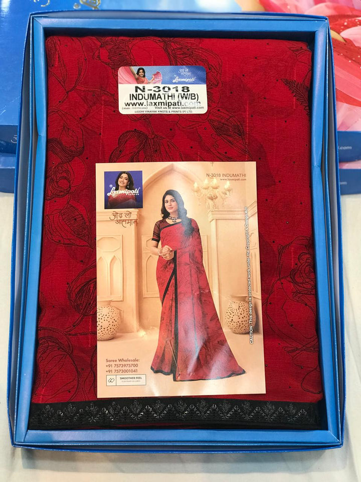 Laxmipati Tohfa N-3018 - Red Chiffon Drape By Sanskar Sarees
