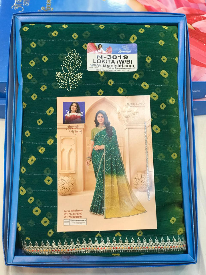Laxmipati Tohfa N-3019 - Green Sprkle Chiffon Drape By Sanskar Sarees