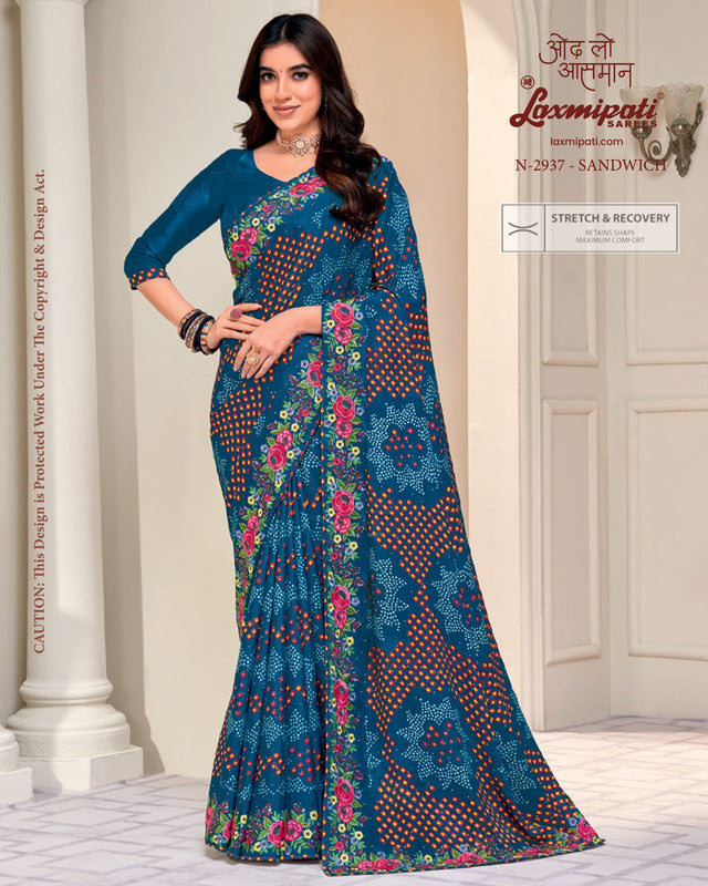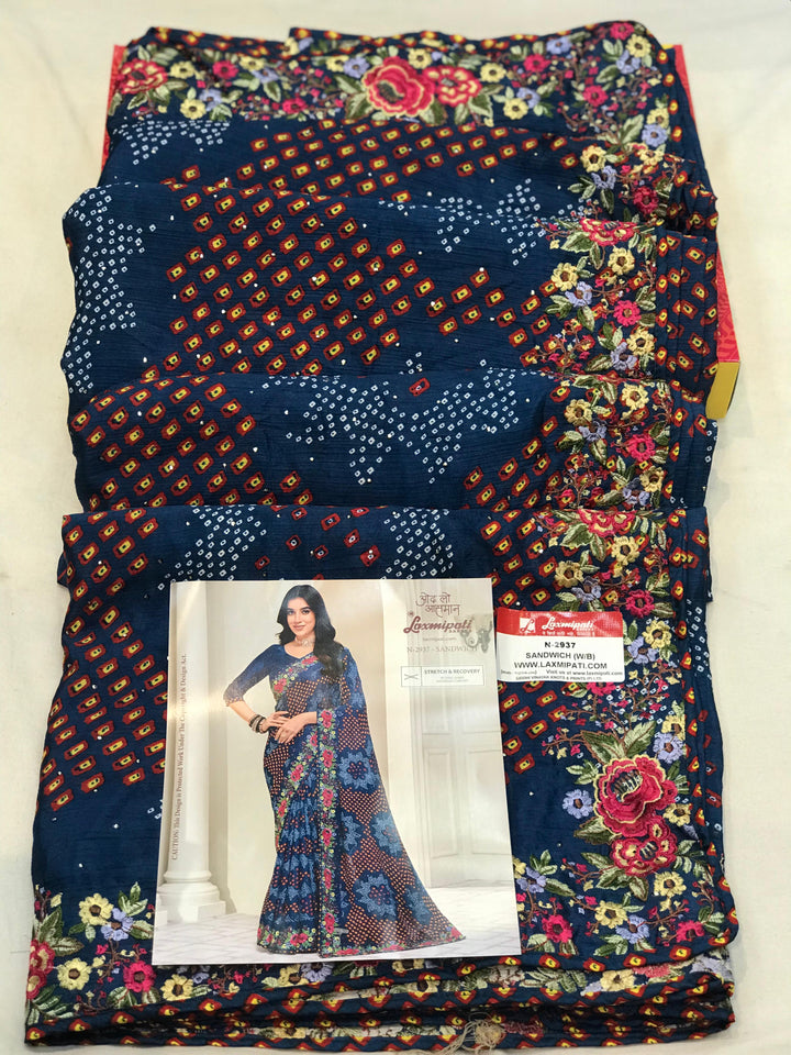 Laxmipati Totapuri N-2937 - Dark Blue Crepe Silk Drape By Sanskar Sarees