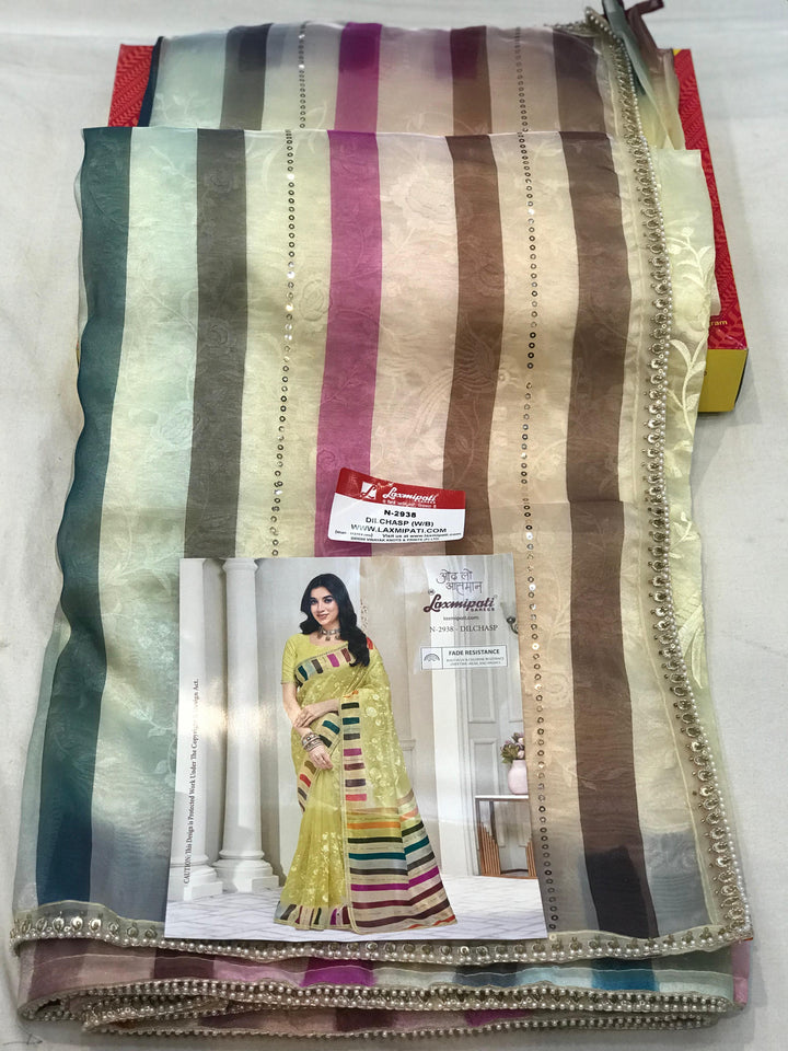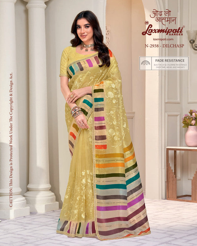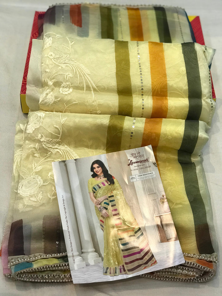 Laxmipati Totapuri N-2938 - Yellow-Multi Organza Drape By Sanskar Sarees