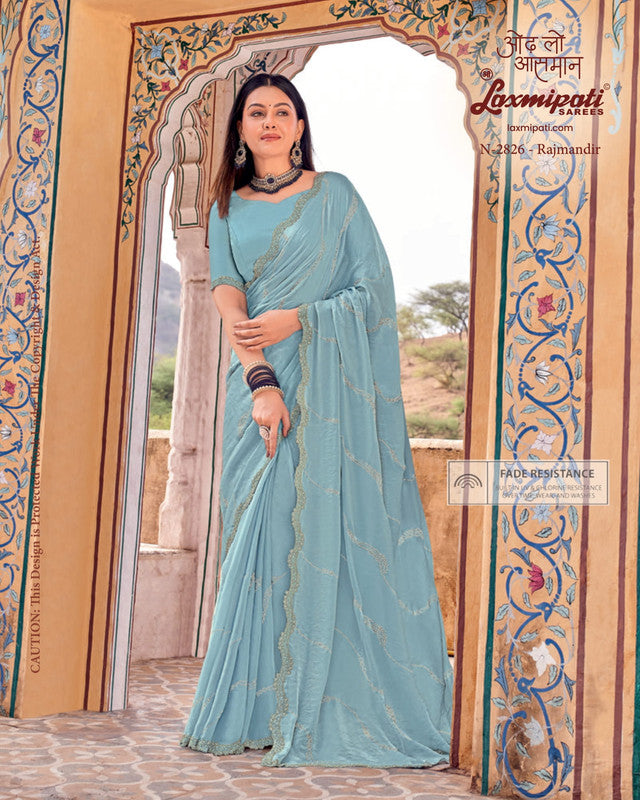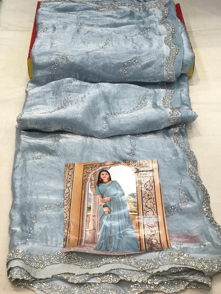 Laxmipati Udan Pari N-2826 - Light Sky Blue Glass Tissue Drape By Sanskar Sarees