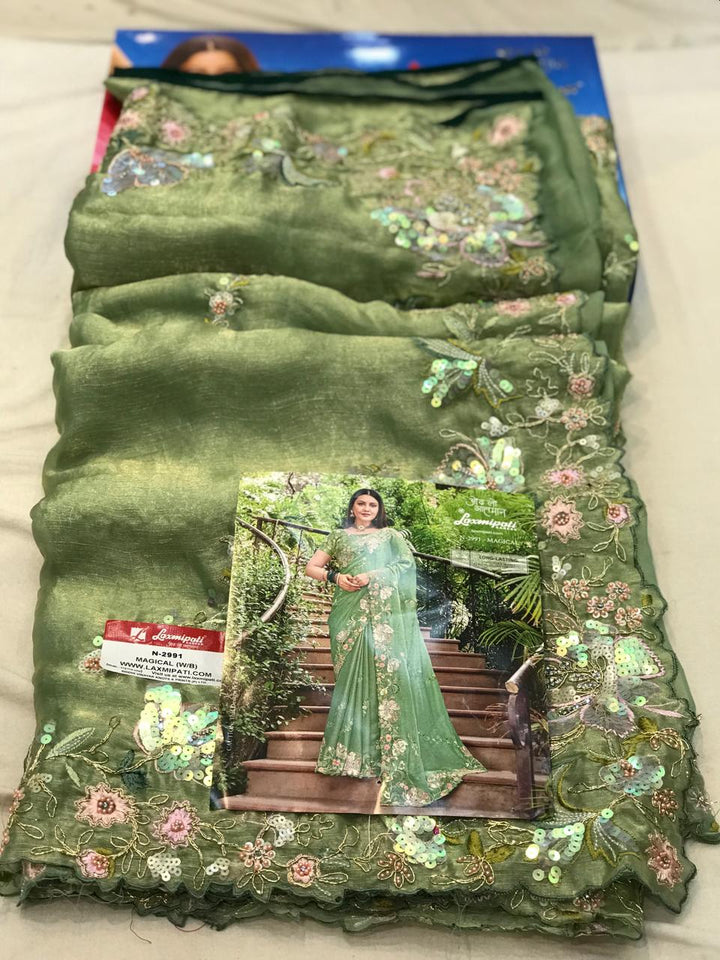 Laxmipati Uphaar N-2991 - Mehendi Sparkle Chiffon Drape By Sanskar Sarees