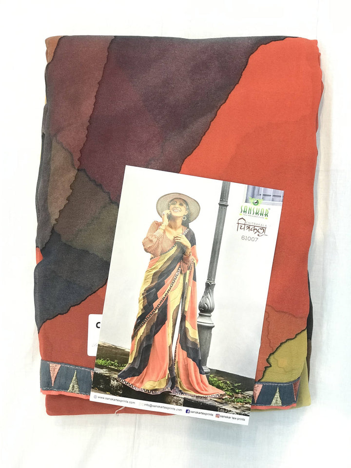 Sanskar Chitrakala Stp-C61007 Multicolor Georgette Saree