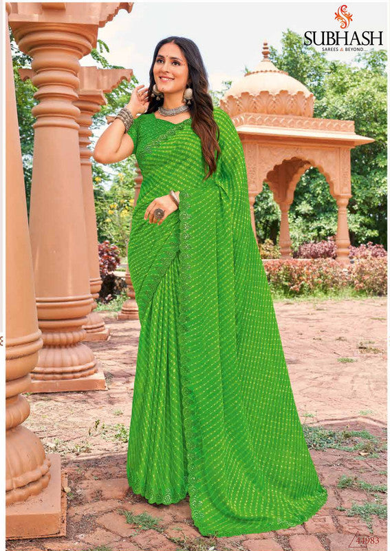 Subhash Gulaabi 44983 - Green Moss Chiffon Drape By Sanskar Sarees