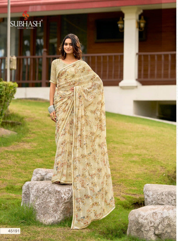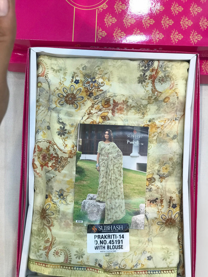 Subhash Prakriti-14 45191 - Yellow Georgette Drape By Sanskar Sarees