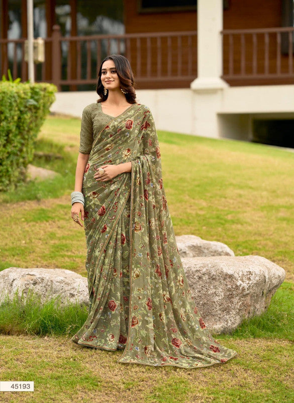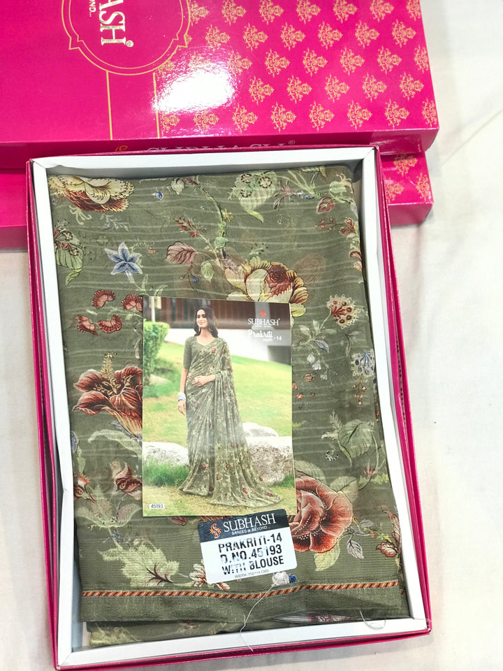 Subhash Prakriti-14 45193 - Mehendi Georgette Drape By Sanskar Sarees